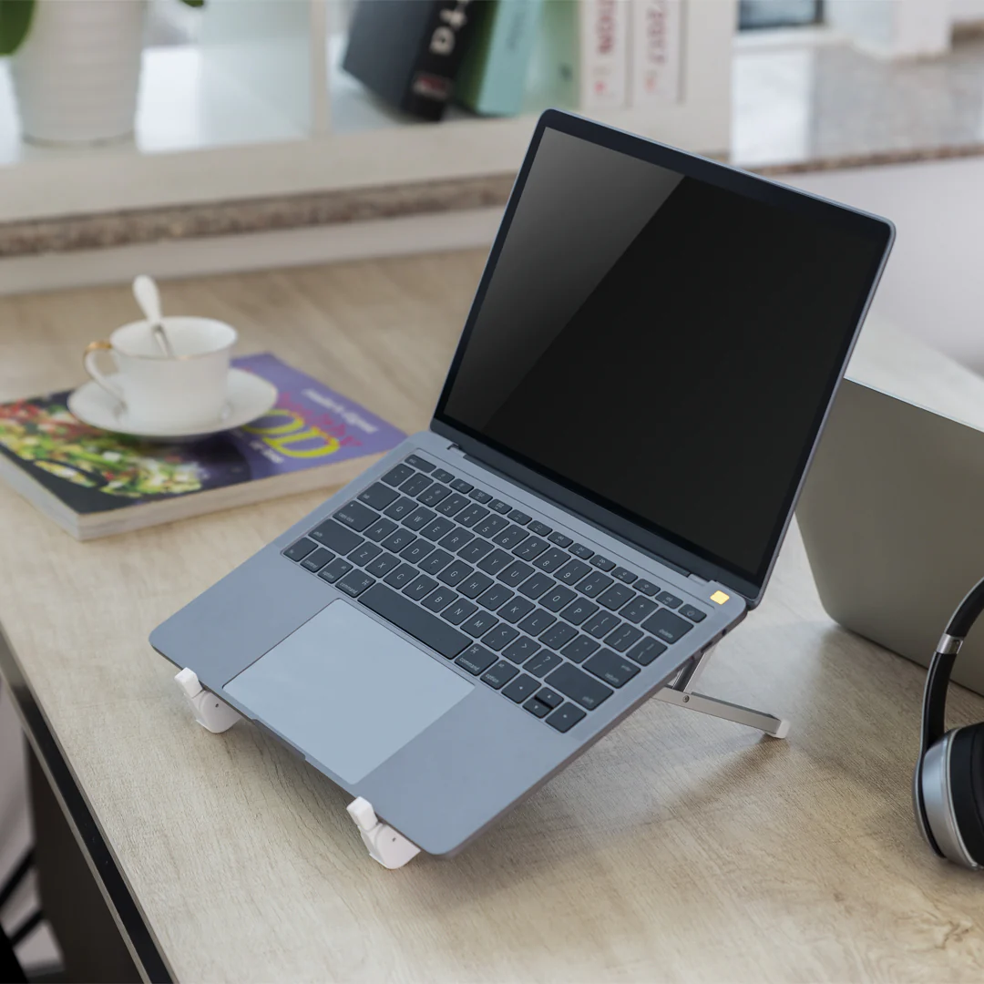 Constructed from robust aluminium, it is fitted with silicone grip pads to keep your laptop in place. Custom designed feet grip the table and keep your laptop 100% stable. Can support laptops from 11 to 15 inches across. And the best thing is, when you’re done you can simply fold it flat, and pack it away with your laptop.
